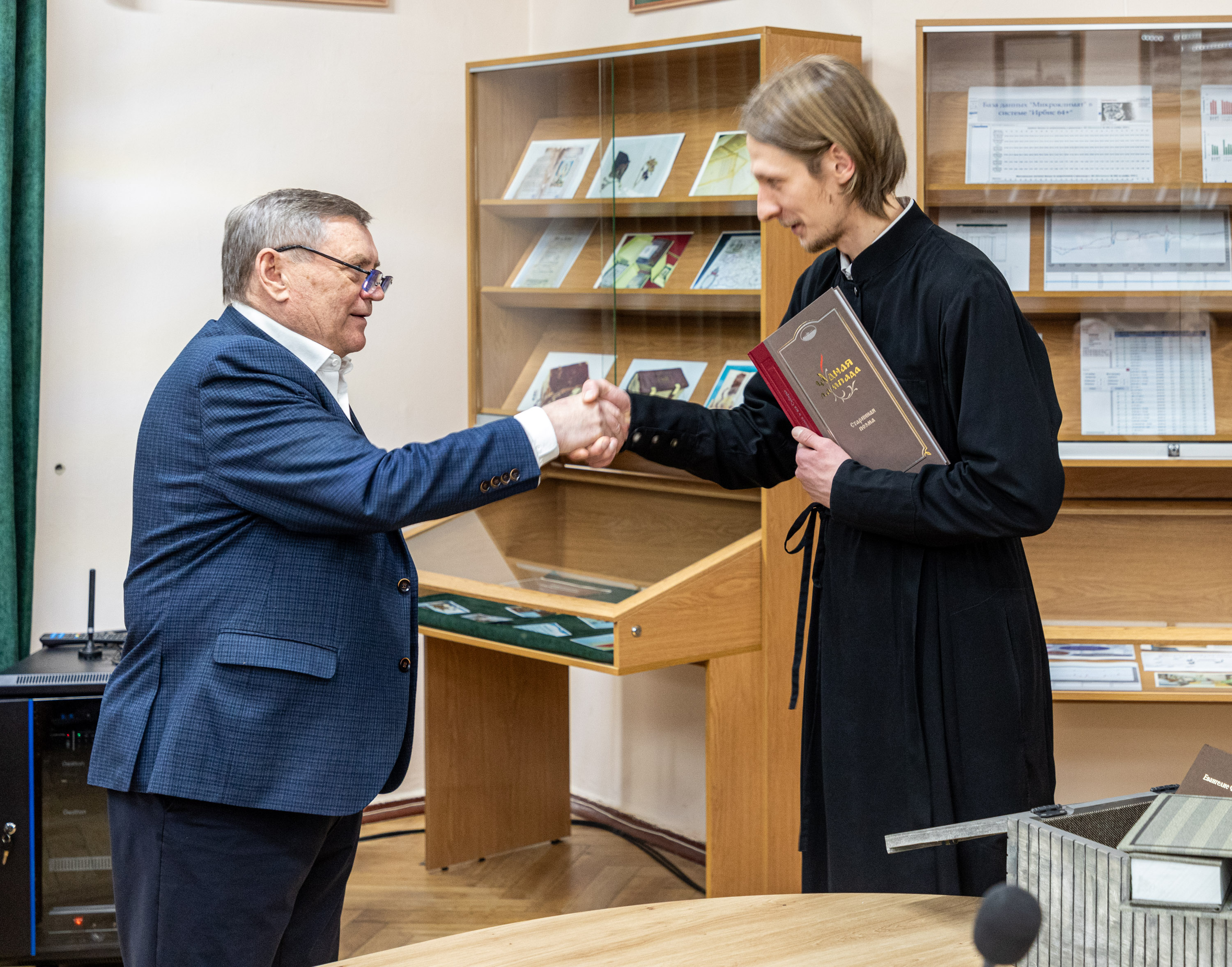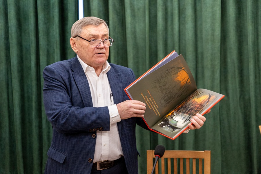 На протяжении всего этого недолгого и негромкого исторического события в библиотеке Академии наук избывалось чувство временности бытия, слышалось дыхания вечности, ощущалось касание мирам иным. Какие-то силы притягивали сердце к отчей земле, какие-то поднимали душу в горние сферы; какие-то токи полнили сознание любовью, какие-то мысли убеждали, что эта любовь должна быть деятельной. Вот такое очень сложное, многосоставное чувство осталось в памяти от встречи Санкт-Петербурга с Сибирью. Но остались не только чувства, но и подарки. Гостям были подарены известные «елфимовские» календари на 2025 г., а также дивная красочно звучащая книга-полиптих, содержащая статьи о создании каллиграфической книги «А.С. Пушкин “Моцарт и Сальери”».