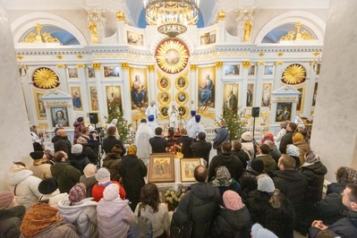 «Предтеча, который сегодня вышел к Иордану, будет говорить: "Покайтесь, ибо приблизилось Царствие Небесное" (Мф. 3:2). Он призывает: "Приготовьте путь Господу, прямыми сделайте стези Ему" (Мф.3:3). Это нужно, чтобы Господь вошел в ваше сердце. И не просто покайтесь, но и принесите плоды покаяния – исправьтесь. Если мы вступили в новый год, то не должны старые свои грехи, привычки переносить в него, иначе чем он отличается от старого? Все греховное нужно оставить в прошлом году, все забыть и по-новому писать страницу своей жизни, исправляться. Но без помощи Божией мы сами ничего не сделаем. У нас не хватит сил даже один день прожить без греха. Нужно все время просить Бога, чтобы Он помог нам искоренить страсти, укрепил наши силы в борьбе со страстями и грехами, чтобы нам проводить чистую, безупречную, целомудренную и святую жизнь. Поздравляю вас с праздником. Святки продолжаются, желаю вам радостного настроения, но не забывайте, что радость духовная отличается от мирской, она другая. Это благодать Божия. С этой благодатью живите, и Бог поможет вам преодолевать трудности», – завершил проповедь митрополит Варсонофий.