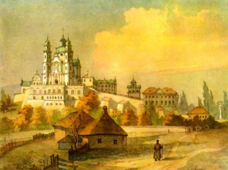 На фото: Т.Г.Шевченко. Почаевская лавра с юга. Бумага, акварель, 1846