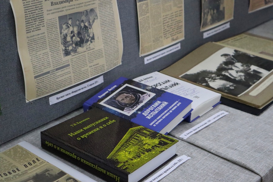 В фойе выставка из фото и вырезки из газет прошедшей эпохи из архива Касимовского индустриального техникума.