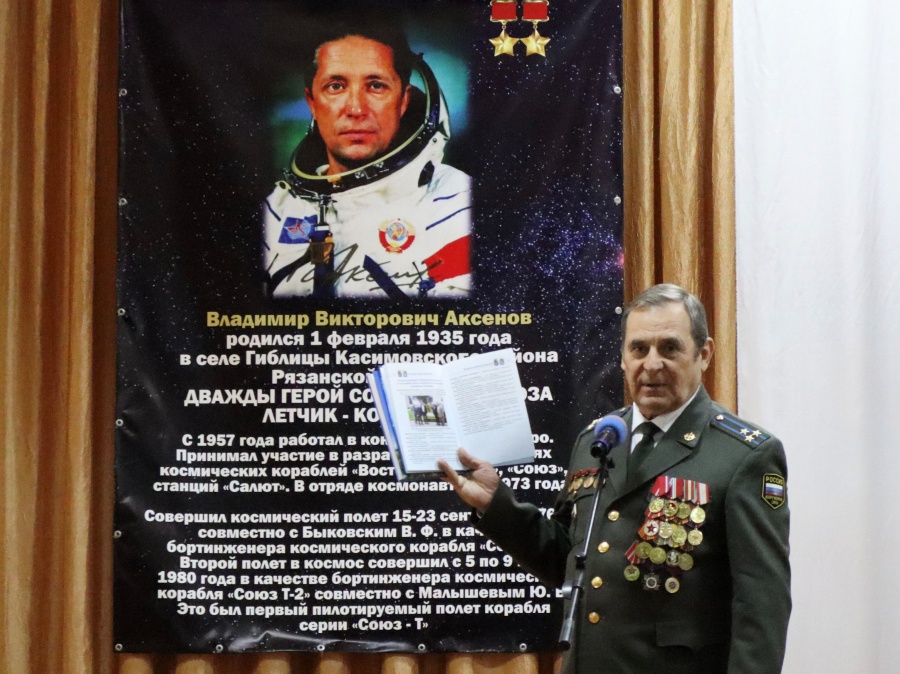 64 года прошло с того момента, как первый человек отправился в космос. За эти десятилетия произошло многое: космос стал намного ближе и понятнее. И один из тех, кто покорил это загадочное и, казалось бы, непостижимое пространство наш земляк из Мещёры! Владимир Викторович своим примером доказал верность пословицы «Терпение и труд всё перетрут». Интересный факт из его космической биографии, описанный в его книге (отмечен на вечере и как талантливый писатель!) «Дорогами испытаний» («Вече», 2009) — при первом старте в космос Аксёнов прошёл ещё один медицинский тест на общую профессиональную и психологическую устойчивость. Аксёнов — единственный из космонавтов, у кого был постоянный и неизменный пульс — около 64 ударов в минуту, и он не изменился до самого старта и при старте ракеты. Это мировой рекорд по уровню спокойствия перед стартом и на самом старте корабля!