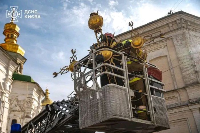 В целях предотвращения дальнейшего разрушения, сегодня был безопасно демонтирован крест из Всехсвятской церкви – памятника архитектуры. Демонтаж осуществили спасатели Госслужбы по чрезвычайным ситуациям Украины под надзором главного архитектора Национального заповедника “Киево-Печерская Лавра”. В ближайшее время крест будет отреставрирован и установлен на прежнее место.