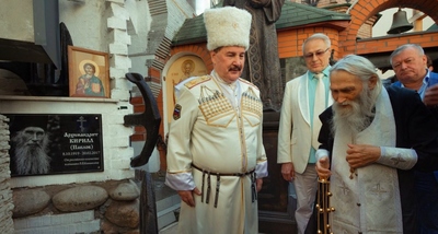 В назначенный день вместе с игуменом Агафангелом (Бобровым) мы забрали старца из келии и отправились к отцу Феодору Конюхову. На часовне установили памятную доску, посвящённую архимандриту Кириллу. Перед этим схиархимандрит Илий её освятил при стечении большого количества моих друзей.