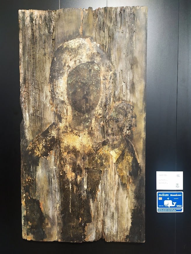 Для людей, далеких от основ религии, на выставке имеются четыре работы, на которых подразумевается изображение иконы. Акцент зрителям делается не на сущности самой иконы, а на том, что это «деревяшка» – просто доски, подразумевается, что этим «доскам» верующие люди молятся. При такой подаче образ иконы лишается своего глубокого символизма способствовать единению человека и Бога. Подобный подход к оскорблению чувств верующих я встречаю впервые и расцениваю его, как святотатство.