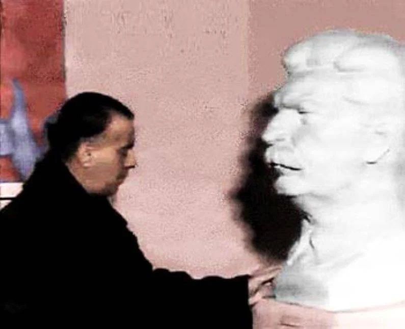 Э. Ходжа у бюста Сталина в музее Ленина-Сталина, Тирана, 5 марта 1978 г.