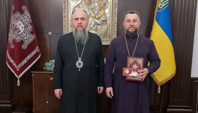 Фото: Два ряженых – Сергей Думенко, т.н. Епифаний, вырядился как архиерей, другой – рейдер в одеждах капеллана пан Роман Грищук (из открытых источников)