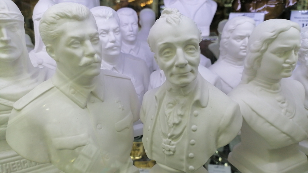 Чтобы быть объективным я детально изучил все отделы лавки, особо фиксируясь на бюстах, плакатах, футболках. Кроме вездесущего Сталина, мне пару раз попался бюст маршала Г.К. Жукова, один раз особенно уважаемого мной маршала К.К. Рокоссовского, зато куда чаще встречались такие «выдающиеся полководцы» Великой Отечественной, как Феликс Дзержинский и Владимир Ленин В этой же компании оказался Юрий Андропов, вклад которого в Победу более чем скромен. К слову, не встретилось ни одного изображения тех же лидеров советского государства Л.И. Брежнева или Н.С. Хрущева, имевших куда более весомое отношение к войне, чем Андропов, не говоря о Ленине и Дзержинском.