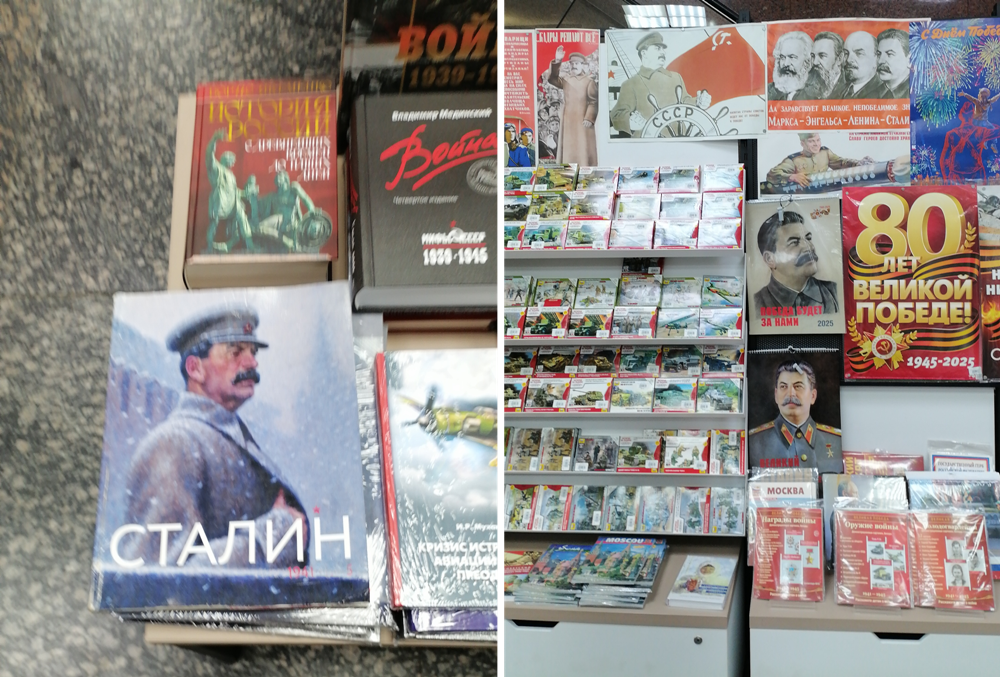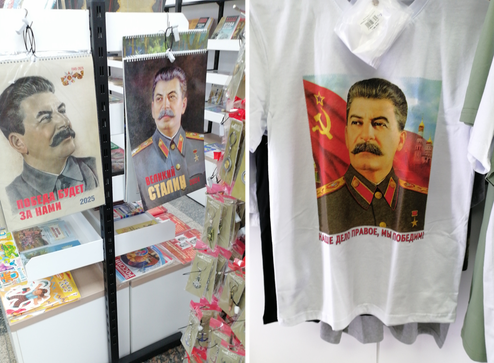 А где же Бог? По некоторым признакам нетрудно догадаться: кто курирует и определяет идеологию не только сувенирной лавки и самого Музея Победы, но и лагеря в целом. Впрочем, почему только их? Очевидно, что под прикрытием священной даты 80-летия Победы, карт-бланш на формирование над-государственной идеологии (поскольку официально она запрещена конституцией) получили люди, до безумия влюблённые в Сталина, тесно связанные с органами госбезопасности и зацикленные на своём пионерском и комсомольском прошлом.