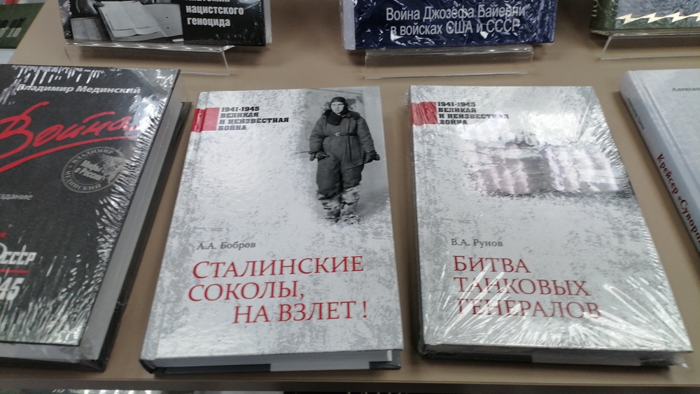 Ни одного из них не оказалось ни на футболках, ни на плакатах, ни на значках: сплошные усато-бородатые физиономии основоположников марксизма-ленинизма и опять Сталин, Сталин, Сталин... Вспомнились люди, грудью встающие на защиту любимого вождя, мол, забыли его, обижают… Сюда бы их, отдохнули бы душой. Спросил продавщицу, нет ли здесь футболок с изображением Суворова, она посмотрела на меня как на больного и, скривив губки, презрительно хмыкнула: «Этого здесь нет!» Про святого царя Николая Второго, внёсшего, между прочим, существенный вклад в Великую Победу, хотя бы тем, что построил Транссиб и Кировскую (Мурманскую) железную дорогу и оставил победителю Сталину несколько линкоров, сотни тысяч винтовок Мосина и пулеметов Максима, я по понятным причинам спрашивать не стал.