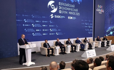 Президент России поприветствовал всех участников пленарного заседания Евразийского экономического форума и отметил, что «в Минск приехали несколько сотен представителей крупного, среднего и малого российского бизнеса, то есть те, кто непосредственно занимается развитием деловых связей со странами Евразэс и на собственном опыте понимает, какие преимущества даёт интеграция и что ещё нужно сделать для улучшения условий взаимных торговых и инвестиционных обменов».