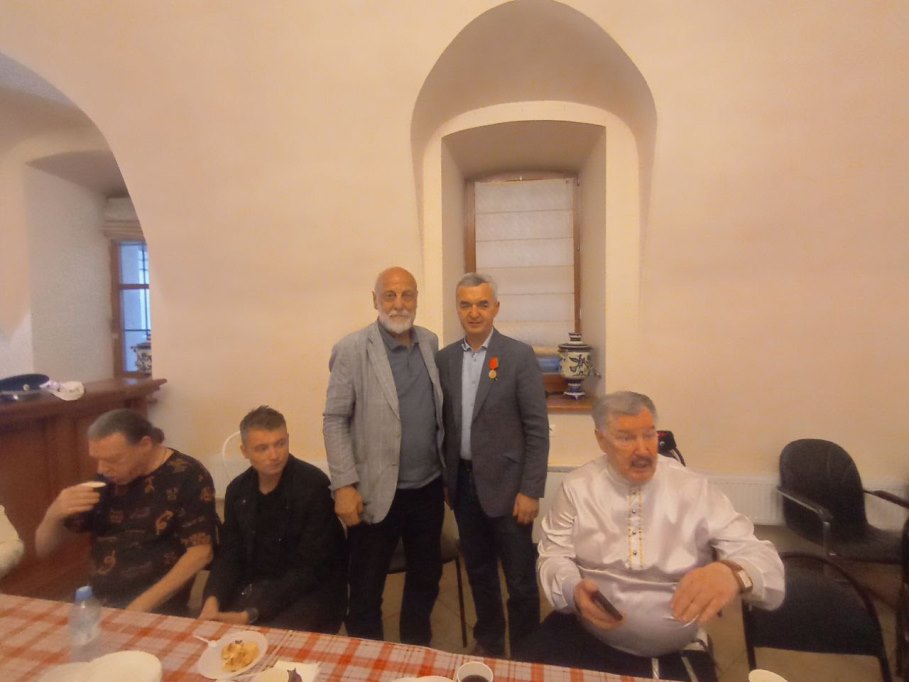 Затем состоялась встреча нового Верховного атамана СКВРиЗ Валерия Камшилова (он же – советник главы Касимова) с известным современным скульптором, автором множества величественных памятников в России Салаватом Александровичем Щербаковым.