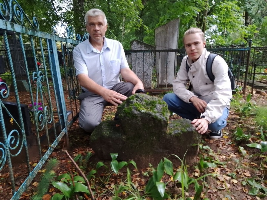 На гражданском кладбище в Клястицах мы обнаружили длинный валун. Перевернув камень на лицевую сторону, увидели на нём высеченный четырёхконечный древний крест. Могильный каменный крест приблизительно датируется Х-ХVI вв. Но заметно, что лицевая сторона креста была грубо стёсана, а на неё нанесен уже христианский символ – девятиконечный крест. Внизу малого креста виден небольшой треугольник, который в христианстве ассоциируется с нагорным местом самой Голгофы, откуда начинается изображение креста.
