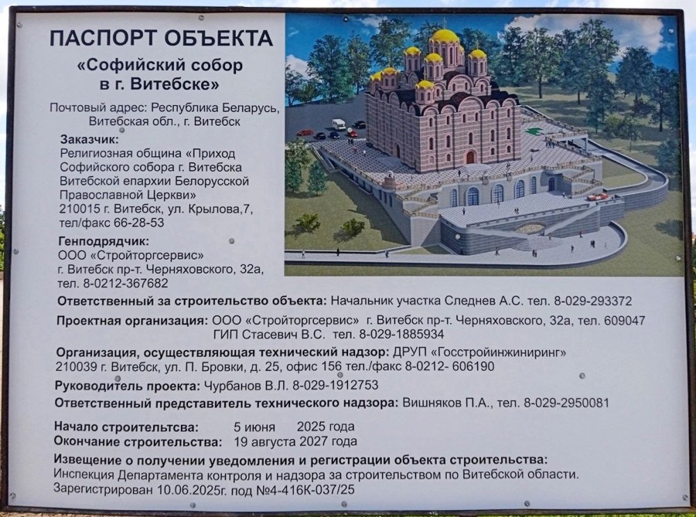 В мае прошлого года наш Президент Александр Лукашенко лично дал разрешение на строительство Софийского собора на новой площадке в Витебска.