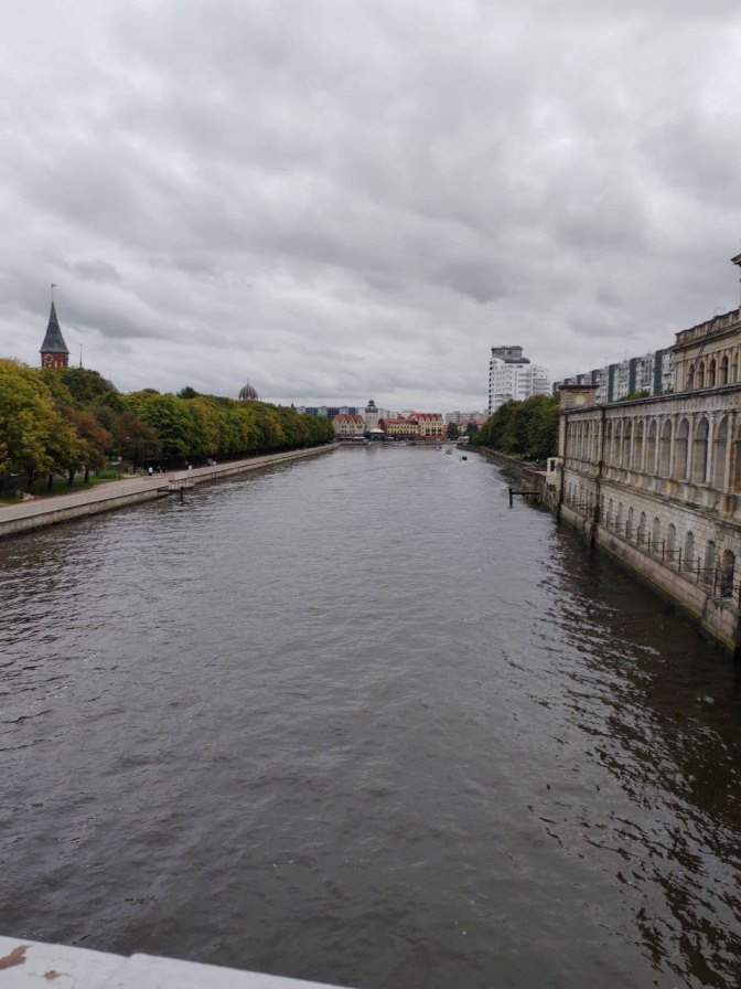 Очень хотелось мне побыть на море ещё пару-тройку дней, но внезапное похолодание побудило уделить время осмотру города. Главной достопримечательностью Калининграда, по общему признанию, стал Музей мирового океана, в который отправилась я в субботу, пройдя пешком длинный мост через реку Преголя. С моста хорошо был виден огромный голубой шар, напоминающий глобус, в котором совсем недавно открылась главная экспозиция, билеты на которую раскупались заранее. Пришлось ограничиться осмотром аквариумов на прежней их выставке да большим залом под названием «Глубина». Примечательно, что именно советские глубоководные аппараты пригодились для поисков затонувшего «Титаника», и Джеймс Кэмерон, режиссёр легендарного фильма, в знак благодарности показал его впервые именно в Калининграде. Любители моря могли пройтись по палубе корабля «Витязь» и других судов, стоящих у причала, но я отправилась вдоль реки на не менее знаменитый Остров Канта.