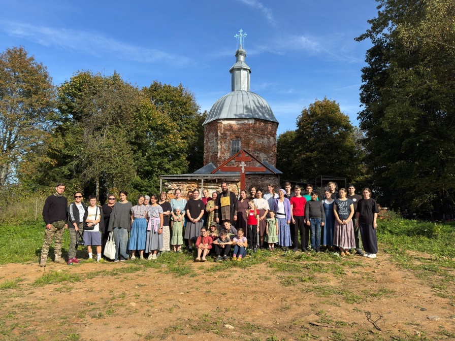 37 человек, в основном молодежь и дети, под руководством отца Павла добрались до Кожино, сначала на машинах, потом пешком. Поставили палаточный лагерь, навели порядок в храме Рождества Пресвятой Богородицы и ближе к ночи все собрались в храме, освященном только свечами и лампадами. Батюшка совершил Всенощное бдение и Божественную литургию, во время которых богослужебные песнопения исполнял молодежный хор, и большинство участников поездки причащалось.