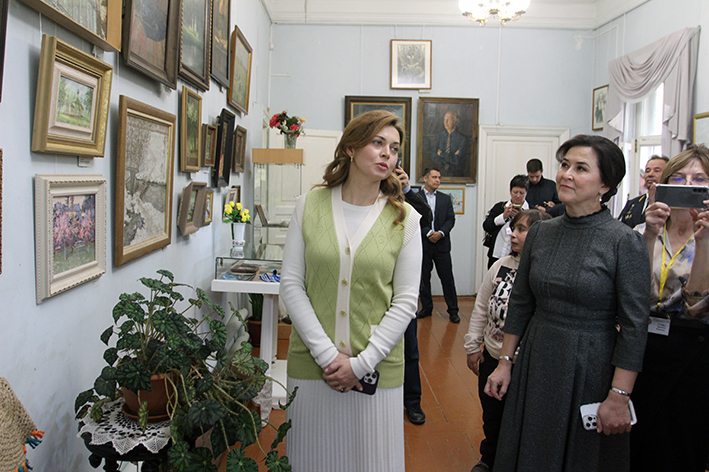 Каринэ Хабирова и Амина Шафикова открывают выставку из собрания картин Ганичевых