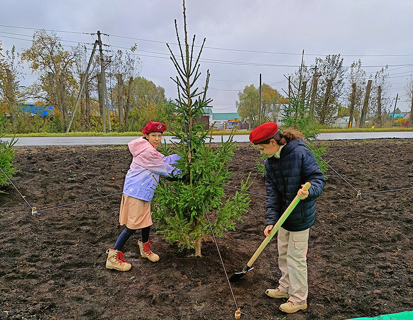 Посадка деревьев на аллее Аксакова в Зубово