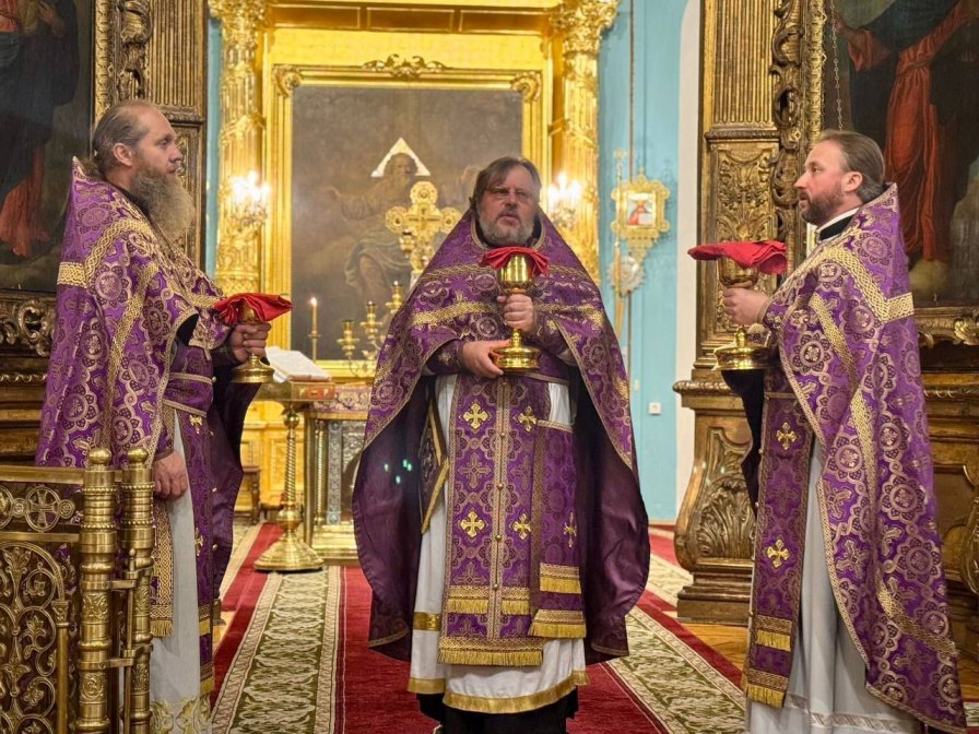 Службу возглавил председатель Отдела по взаимоотношениям Церкви и общества Санкт-Петербургской епархии протоиерей Александр Пелин в сослужении заместителя председателя ОВЦО иерея Александра Башкина, благочинного Кудровского округа Выборгской епархии протоиерея Владимира Данковича и настоятеля храма пророка Илии в пос. Ефимовский Тихвинской епархии – иерея Михаила Ломакина.