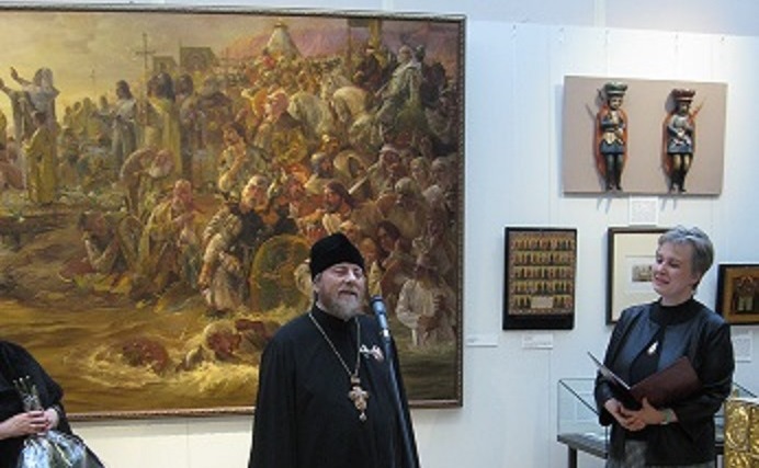 В своем выступлении архимандрит Нектарий выразил восхищение выставкой, представленными прекрасными работами, редкими экспонатами; вспомнил, как в 1988 г директор С.А. Кучинский передал в его храм иконы, тем самым был создан прецедент возврата Церкви музейных ценностей; и остановился на исторической характеристике темы. Он отметил, что формировавшееся русское государство восприняло православие в чистом виде от Византии, когда уже были окончены все богословские споры, что благодаря принятию православия разрозненные восточно-славянские племена стали единым русским народом, что началось создание храмов, икон, певческой традиции, что создатели произведений вкладывали в них душу, и теперь мы наслаждаемся этой красотой.