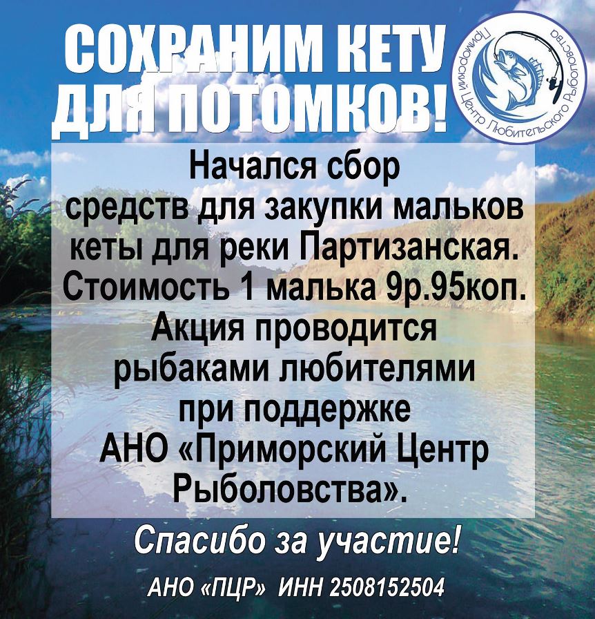 В октябре 2025 года в Находке зарегистрирована Автономная некоммерческая организация «Приморский центр развития спортивного и любительского рыболовства» (сокращённо «ПЦР»). Первая её акция – это сбор денежных средств для закупки малька кеты и выпуска его в реку Партизанская.