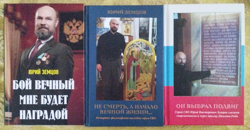 Подарки для меня и моей жены неизбежны, но один подарок в этот раз особенно ценен. Я уже писал о православном рыцаре Юрии Земцове, племяннике Бориса, героически погибшем под Бахмутом. Борис совершил великий подвиг: он подготовил три книги о своем сроднике – одну с изложением историко-философского наследия героя СВО Юрия Земцова, вторую – с его религиозными трудами и третью книгу – сборник воспоминаний об этом великом человеке.