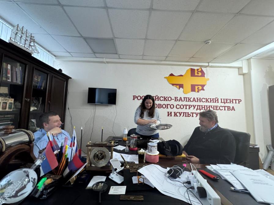 В «Доме национальностей», где проходила презентация моей книги на русском языке, был приятный сюрприз: послушать рассказ о духовных связях сербов и русских пришло много молодёжи. Не хотел много говорить о героях своей книги, больше внимания уделил духовной вертикали и системе координат нравственных ценностей, которая у сербов и русских очень схожа. Конечно, с приведением множества исторических примеров и параллелей. После моего выступления последовала очень интересная дискуссия, в ходе которой многие присутствующие интересовались положением дел не только в Сербии, но и в бывшей Югославии. После презентации книги любезный заместитель директора «Дома национальностей» приглашает сербского гостя вместе с Евгением и Михаилом на чай и продолжение разговора на балканские темы.
