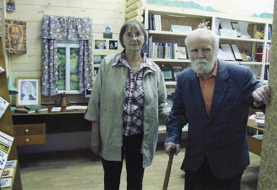 Василий Иванович и Ольга Сергеевна Беловы в центральной библиотеке г. Харовска – знакомство с мемориальной комнатой писателя