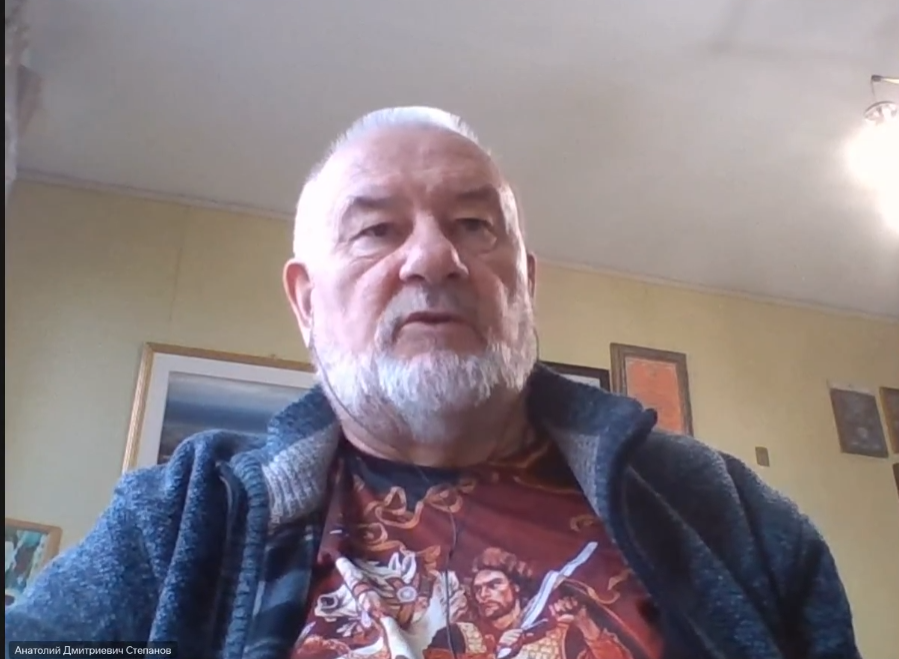 Затем слово было предоставлено главному редактору «Русской народной линии», историку Анатолию Дмитриевичу Степанову, выступавшему дистанционно. Докладчик указал на сложности использования понятия «славянофильство», которое в публицистике, а иногда и в научной литературе используется не вполне корректно, есть как минимум три смысла понятия.