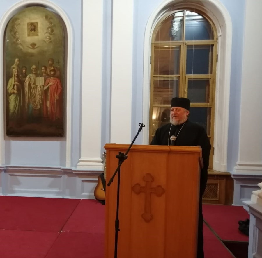 Отец Вадим зачитал приветствие митрополита Санкт-Петербургского и Ладожского Варсонофия.