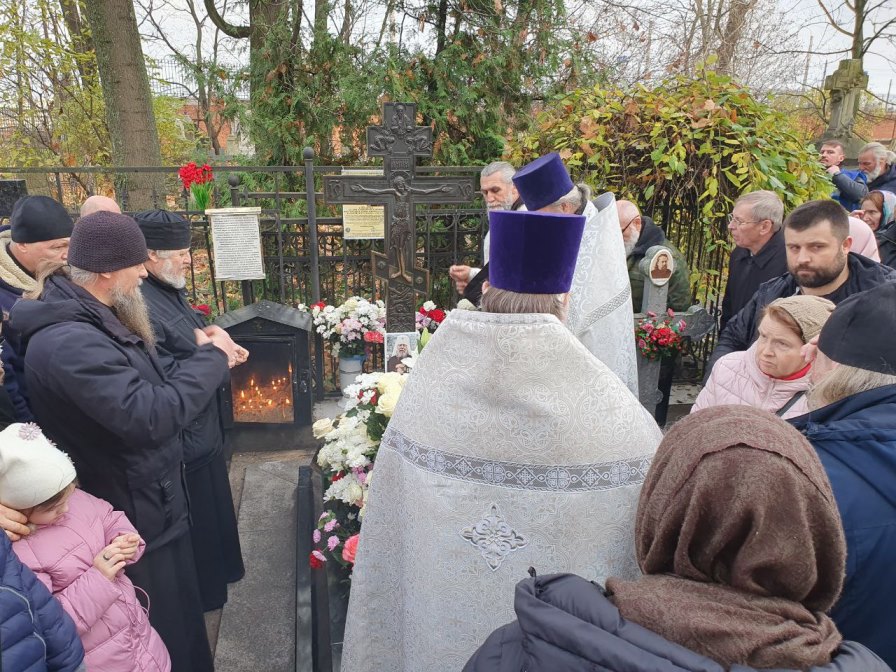 Анатолий Степанов сообщил, что помимо панихиды на кладбище утром была отслужена лития у памятника митрополиту Иоанну на территории Казанского храмового комплекса на Гамбургской площади (угол Софийской улицы и проспекта Славы). Его автор – Вячеслав Клыков (1939-2006). Памятник уже установлен, сейчас завершается доделка и, даст Бог, через пару недель митрополит Варсонофий освятит этот прекрасный монумент великого мастера приснопоминаемому Владыке.