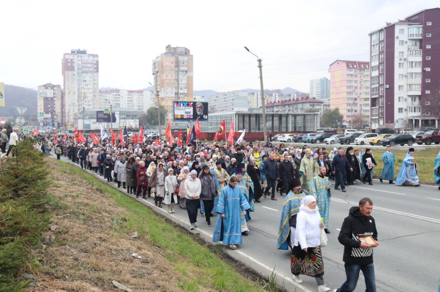 В молитвенном шествии во главе с Владыкой Николаем, епископом Находкинским и Преображенским, приняли участие представители духовенства Находкинской епархии, представители администрации и думы Находкинского городского округа, ЗАТО г. Фокино и Большого Камня, общественных организаций, горожане и гости Находки, глава города Тимур Владимирович Магинский.