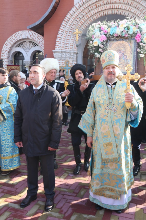 По прибытии Крестного хода в храм перподобного Максима Исповедника епископ Николай возглавил праздничный молебен пред образом Казанской иконы Божией Матери. Затем Владыка обратился ко всем присутствующим с архиерейским словом, в котором поздравил горожан с Днём народного единства.