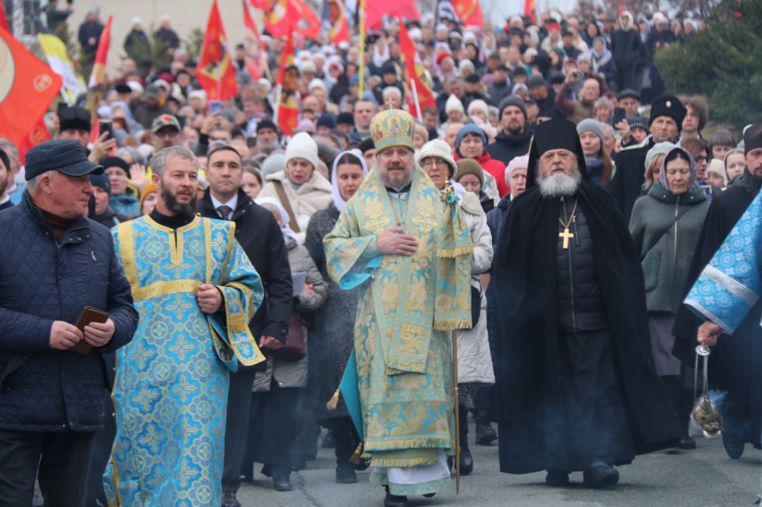 После праздничного богослужения прошел Крестный ход от главного епархиального храма до храма преподобного. Максима Исповедника на озере Соленом.