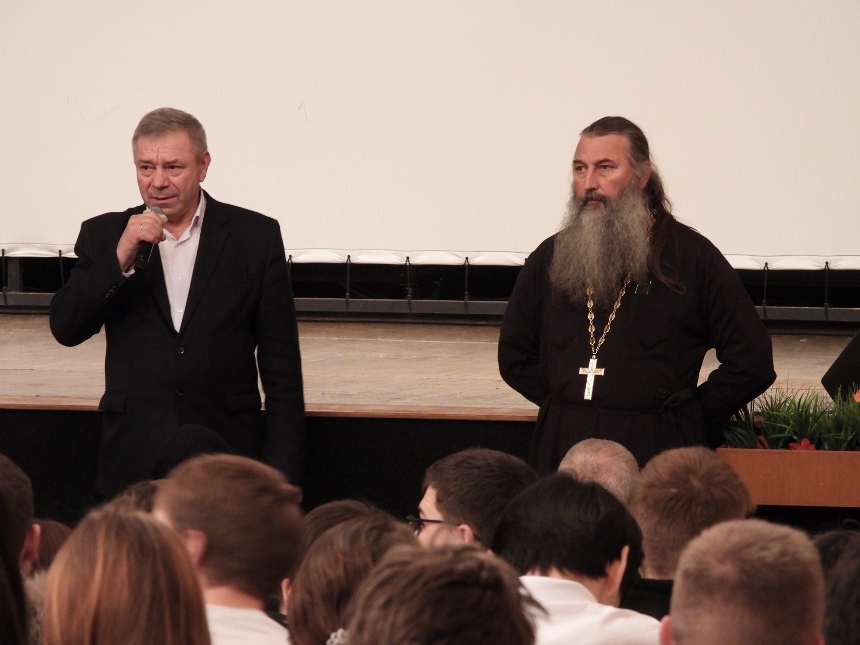 Фильм представил для юных калязинских зрителей очень интересный гость, который прибыл специально по приглашению главы округа Константина Ильина, - это один из героев фильма священник Александр Тылькевич.