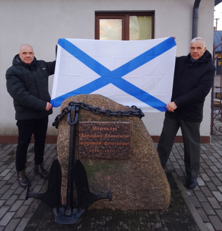 В Витебске возле памятного знака Западно-Двинской флотилии я с братом Андреем развернул Знамя Военно-морского флота России. И минутой молчания мы почтили память моряков Западно-Двинской флотилии, а также Героя Советского Союза Самуила Богорада.