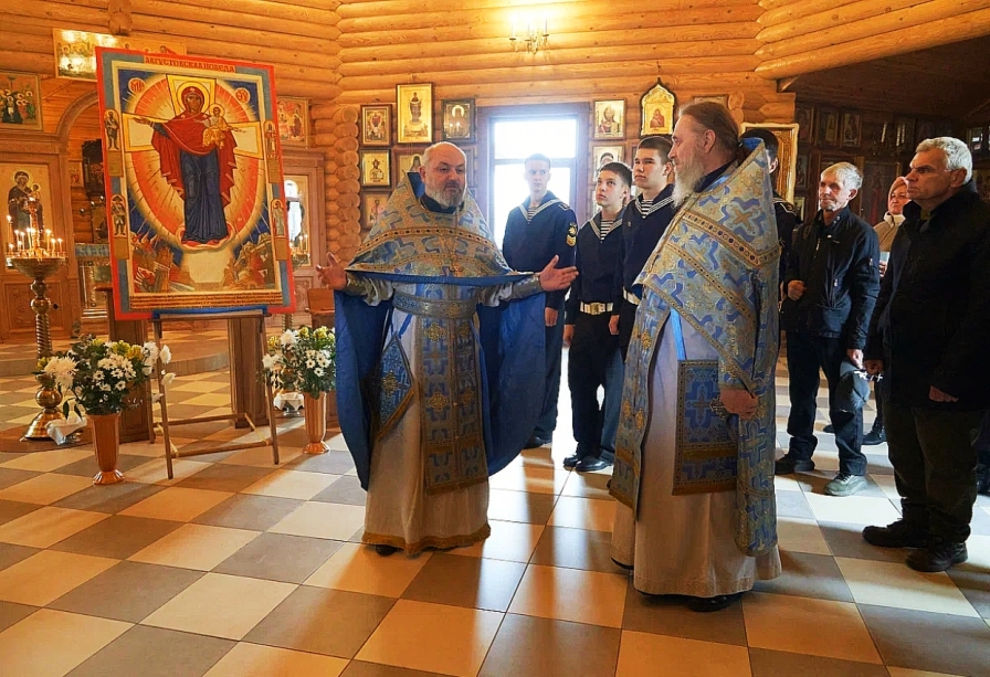 У иконы был выстроен почётный караул кадетов филиала Нахимовского училища в Мариуполе.
