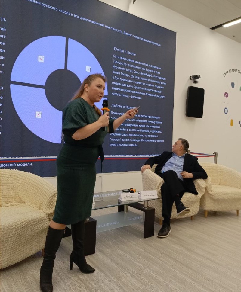 После перерыва также выступили: старший преподаватель Института истории и политики Московского педагогического государственного университета, член Российского исторического общества Московский Юрий Викторович на тему «Победы России как основа позитивного видения нашей истории и единства народов страны»; доцент кафедры истории России Государственного университета просвещения, кандидат исторических наук, доцент Богоявленский Дмитрий Дмитриевич на тему «Единство народов России в правомонархической доктрине начала ХХ века: цивилизационная идентичность и имперская миссия»; исполнительный директор «Ассоциации музеев космонавтики России» (АМКОС) Марусев Александр Сергеевич на тему «Объединяющая сила космоса»; руководитель Комитета по институализации идеологии МОО КП Сфера Филиппова Валерия Владимировна на тему «Цивилизационно-ценностные основания страны как стержень межнационального и межконфессионального Сплочения»; церковный историк, Настоятель Храма Новомучеников и исповедников Домодедовских протоиерей Максим Колесник; руководитель образовательного центра «Интеллект», автор проекта «Информация 2.0» Малахов Михаил Юрьевич на тему «Информационная безопасность молодежи – новые вызовы»; координатор Международного общественного движения «Народный институт развития» Фомин Эдуард Владимирович на тему «Онтологические основания построения русского мира»; помощник Верховного атамана СКВРиЗ Камшилова В. В. по продвижению и популяризации казачества, есаул Доронина Татьяна Александровна на тему «Влияние казачества на объединение народов России» и другие.