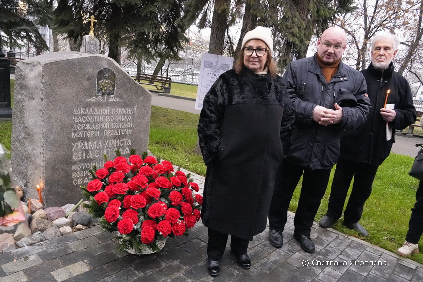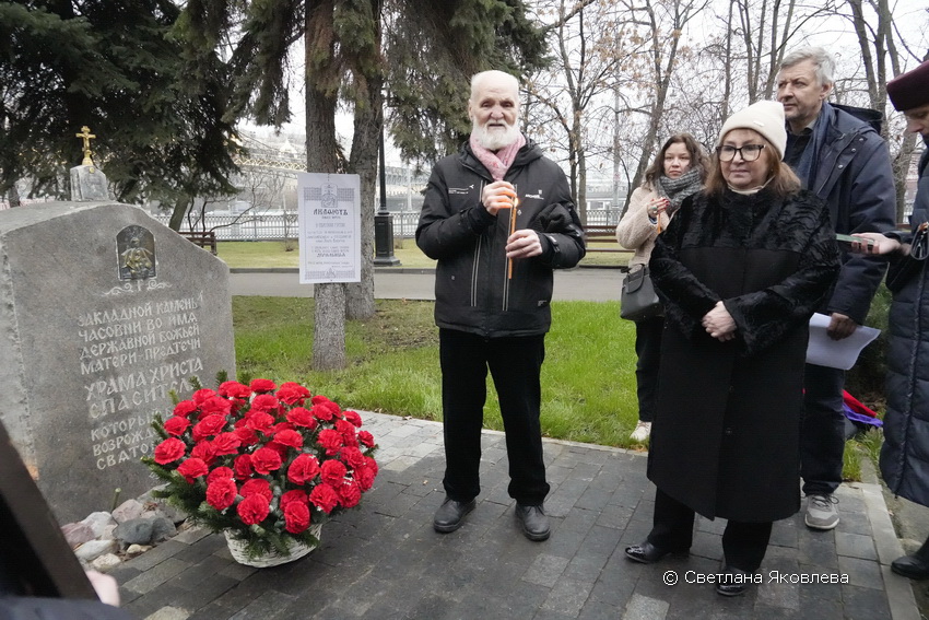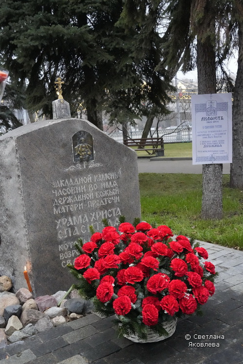 5 декабря 1990 года на Волхонке, близ того места, где стоял Храм Христа Спасителя, был торжественно установлен гранитный камень с высеченной надписью: «Закладной камень во имя Державной Божией Матери — предтечи Храма Христа Спасителя, который будет возрожден на этом святом месте».