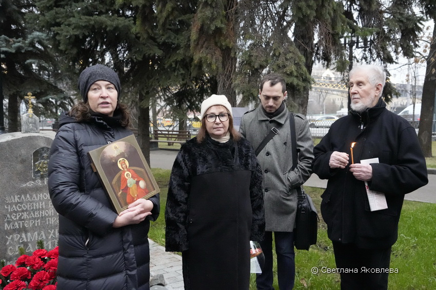 Открыла торжественную церемонию Галина Васильевна Ананьина — председатель правления Женского патриотического общества, автор книги «Под Державным Покровом. История народного почитания», которая напомнила об истории обретения Державной Иконы Божией Матери — иконы второго Крещения Руси, именно с этой Иконой отмаливался Храм Христа Спасителя, когда на его месте был ещё бассейн «Москва».