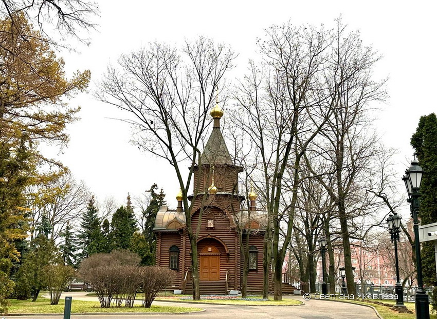 В 1995 году рядом со строящимся храмом Христа Спасителя был построен деревянный, шатровый храм-часовня во имя иконы Божией Матери «Державная» (автор проекта архитектор А.Н.Оболенский), который должен был, как бы предварить восстановление Храма Христа Спасителя на своем историческом месте. В храме сразу начались регулярные богослужения, постоянно совершалась молитва о скорейшем возрождении Храма Христа Спасителя, молитва за строителей и благотворителей.