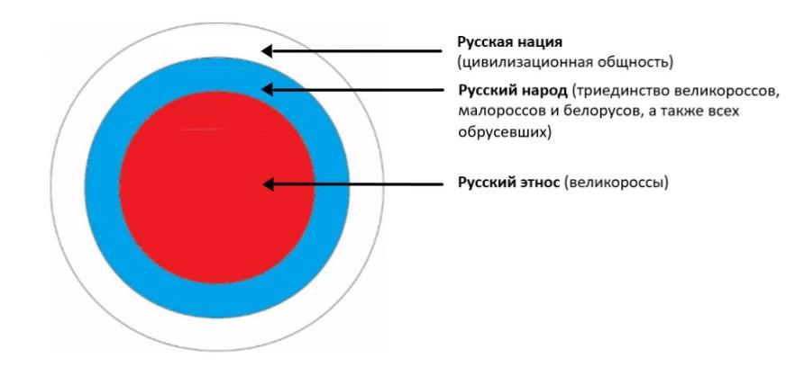 4. «Русские» как цивилизационная политическая нация (как имперская политическая нация, как политическая нация «самобытного государства-цивилизации») – это историческая, надэтническая, политическая и социально-экономическая общность людей, сложившаяся в ходе формирования русского имперского государства (самобытного государства-цивилизации), использующая русский язык как язык общения и русскую культуру как объединяющую. То есть, понятие «русский народ» отражает уже не столько национальность (т.е. кровнородственную связь поколений, как у этноса), но прежде всего, культурно-цивилизационную идентичность. До 1917 года в Российской Империи эта многонациональная общность называлась «русские» (император Николай Первый объяснял французу А. де Кюстину, что русскими являются и остзейский барон, и грузинский князь, и молдавский господарь, и малороссийский козак, и татарский мурза), в СССР – «советский народ». Пример принадлежности к такой общности дал И.В. Сталин, заявивший, что он – не грузин, а русский грузинского происхождения. В этом смысле вполне естественно говорить, что «русская цивилизационная (имперская) нация» – это единая наднациональная общность, а точнее, – это римляне Третьего Рима. Патриарх Кирилл, выступая на ВРНС 19 ноября 2025 года заявил, что мы должны понять и принять тот факт, что Советский Союз оставался Третьим Римом, как и современная Россия является Третьим Римом. Если сказать коротко, то русская нация – это цивилизационное единство триединого русского народа и «нерусских русских».