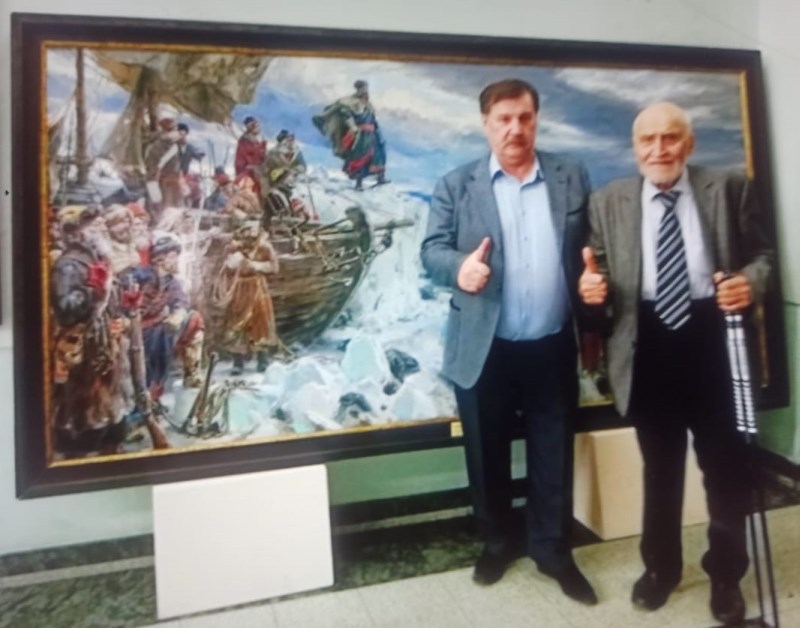 С Н.Н.Дроздовым у картины «Атаман Дежнёв на мысе Дежнёва»