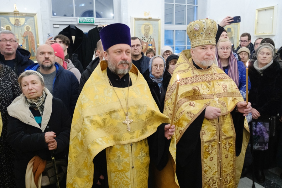 Владыке сослужили секретарь епархиального управления протоиерей Сергий Куксевич, благочинный Фрунзенского округа протоиерей Алексий Исаев, настоятель протоиерей Артемий Белобородов с клиром и другие священнослужители.