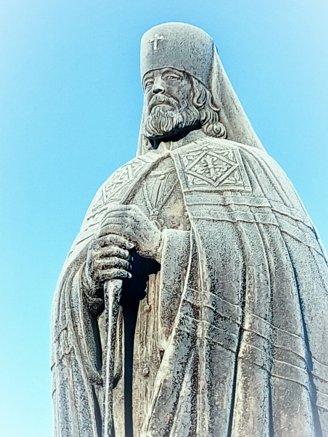...А на другой день со статуей владыки Иоанна произошло маленькое чудо. Стукнул легкий мороз и памятник покрылся снежным инеем, из темно-медного он стал светлым и сияющим, как будто преобразился...