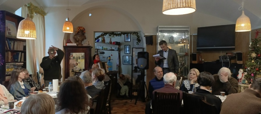 Событие продолжилось в Центре современной литературы и книги на Васильевском. Кроме ярких выступлений различных людей, происходило общение и дружеское чаепитие. Чувствовалась душа, чувствовалась любовь к русскому слову, чувствовалась глубокая погружённость в поэзию Николая Михайловича Рубцова, его удивительную лирику Русского Севера, его любовь к России. Пелись песни под баян и гитару, читались стихи.