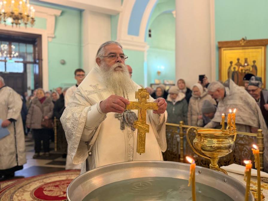 Во время службы была вознесена молитва о мире. После заамвонной молитвы под пение тропаря «Глас Господень на водах...» духовенство вышло в центр храма, где митрополит Константин совершил освящение воды. Затем было совершено славление празднику.