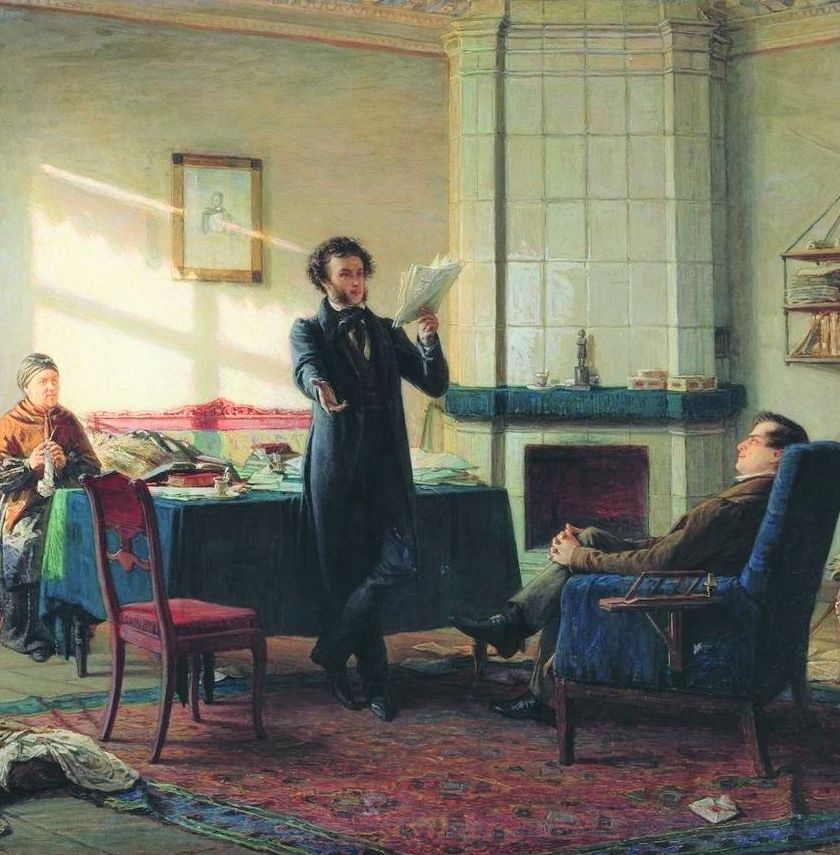 Решение творческой задачи такого масштаба стало возможным лишь в атмосфере высокого общественного подъёма, обнаружившего зрелость национального самосознания. Эту зрелость дал России 1812 год. «Потрясши всю Россию из конца в конец», он, по словам Белинского, «пробудил её спящие силы и открыл в ней новые, дотоле неизвестные источники сил, чувством общей опасности сплотил в одну огромную массу косневшие в разъединённых интересах частные воли, возбудил народное сознание и народную гордость». Вся Россия тогда, «в лице своего победоносного войска, лицом к лицу увиделась с Европою, пройдя по ней путём побед и торжеств. Всё это сильно способствовало возрастанию и укреплению возникшего общества. В двадцатых годах текущего столетия русская литература от подражательности устремилась к самобытности: явился Пушкин».