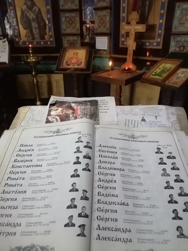 Уже стало традицией и внеплановое чтение Псалтири женщинами, которые почти ежедневно приходят сюда в свой обеденный перерыв, чтобы молитвенным щитом прикрыть наших воинов. Не редкость, когда и другие, вроде бы случайные гости, зашедшие из любопытства, включаются в тот процесс. Несмотря на низкую температуру зимой и отсутствие электричества (а Часовня, к сожалению, в силу ряда причин обесточена), здесь не перестают возноситься к Господу горячие молитвы.