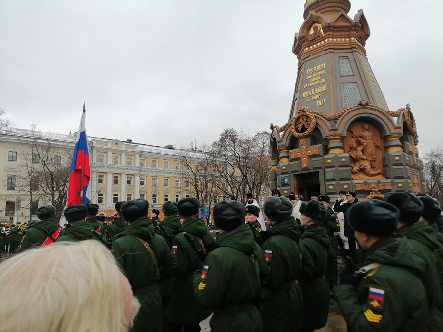 В сражении 9 декабря (по н.ст.) 1877 под Плевной, заблокированная в крепости 40 000 группировка противника пыталась с боем вырваться, чего не дали ей сделать храбрые русские гренадеры. Турки, потеряв тогда свыше 6000 солдат и офицеров, вынуждены были сдаться в плен, а наши славные молодцы лишились тогда же 559 героев. Эта блестящая победа русского оружия оказала решающее значение для всего хода войны, которая вскоре завершилась выходом наших войск к Константинополю и заключением Сан-Стефанского перемирия, давшего прежде всего независимость Болгарии и целому ряду других балканских государств.