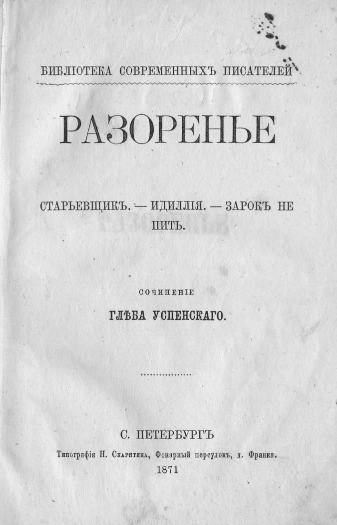 Как отметил Д.И. Стогов, помимо обетов трезвости, существовали еще и зароки – когда человек обещал на какое-то время не пить, однако в отличие от обетов трезвости они не проводились в храме. Такой зарок не пить описал в своем небольшом очерке известный русский писатель Г.И. Успенский (из цикла «Живые цифры» (1888)). В нем автор с глубоким психологизмом исследует тему народного пьянства и бессилия человека перед тяжелыми жизненными обстоятельствами. Главный герой – мастеровой человек, который изнурен тяжелым трудом и беспросветной нуждой. Доведенный до отчаяния своим пьянством, которое разрушает его жизнь и семью, он решает дать «зарок» – торжественное обещание Богу больше не пить. Сначала зарок кажется спасением: герой чувствует духовный подъем, его жизнь ненадолго упорядочивается. Однако Успенский показывает, что корень проблемы не только в слабой воле человека, но и в самой окружающей среде. Герой живет в мире «живых цифр» – сухой статистики и жестокой экономической реальности, где честный труд не приносит достатка, а только изматывает. Вскоре на героя наваливаются новые невзгоды: отсутствие работы, долги и холодное равнодушие общества. Душевное напряжение становится невыносимым. Он понимает, что трезвость в этих условиях заставляет его еще острее чувствовать свою безысходность и нищету. В финале герой не выдерживает давления обстоятельств и нарушает клятву. Успенский в очерке подчеркивает, что личного морального усилия (зарока) недостаточно, чтобы победить социальное зло. Без изменения «каменного» строя жизни, который подавляет человека, любая попытка спастись в одиночку обречена на провал. Пьянство здесь выступает не как порок, а как трагическое следствие невыносимых условий существования простого народа. Таким образом, подчеркнул Д.И. Стогов, общество должно поддерживать идеи трезвости; иначе, как известно, поскольку один в поле не воин, то человек может снова пасть.